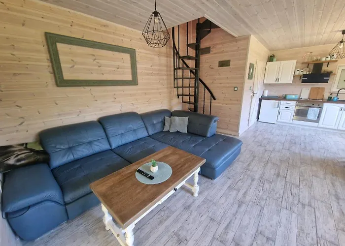 Vila Domek pod lasem Niepoczolowice je umístěna 3 km od Castle Hill, je 1-ložnicové ubytování s terasou. Hosté, kteří se ubytují v tomto ubytování typu prázdninový dům, mohou využít kuchyňku s chladničkou a troubou k přípravě domácích jídel.